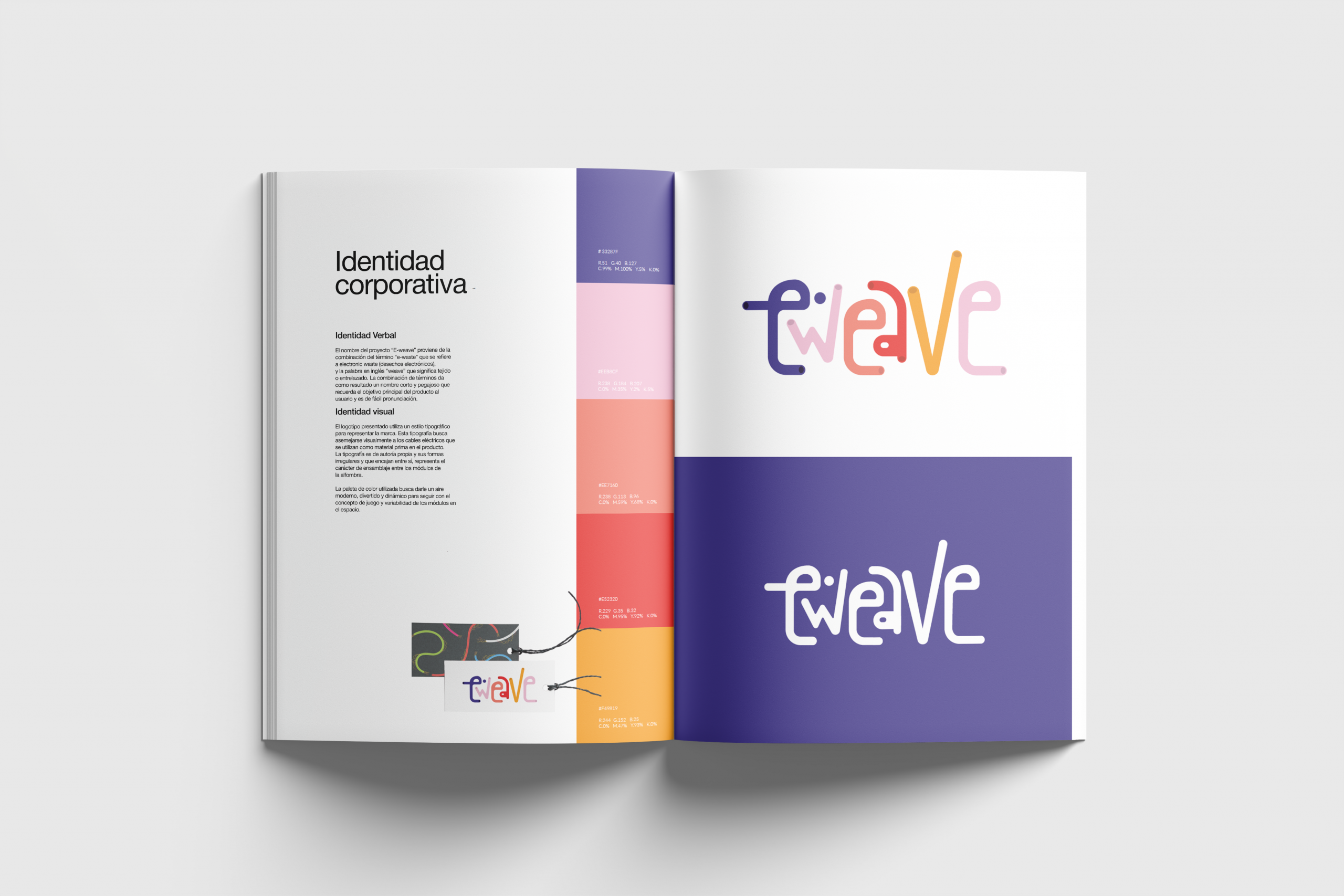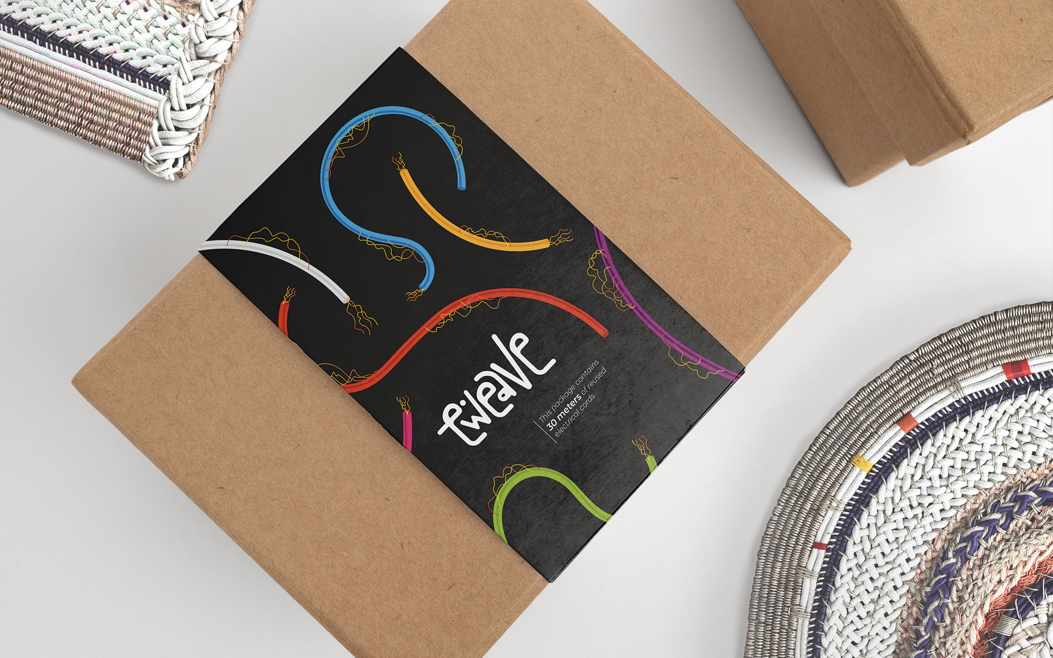 E-weave es un proyecto que fusiona prácticas y materiales de artesanía (cestería y macramé) con el plástico de cables provenientes de desechos electrónicos. Estos elementos se fusionan para crear un sistema de alfombras modulares que el usuario puede adaptar a su espacio.