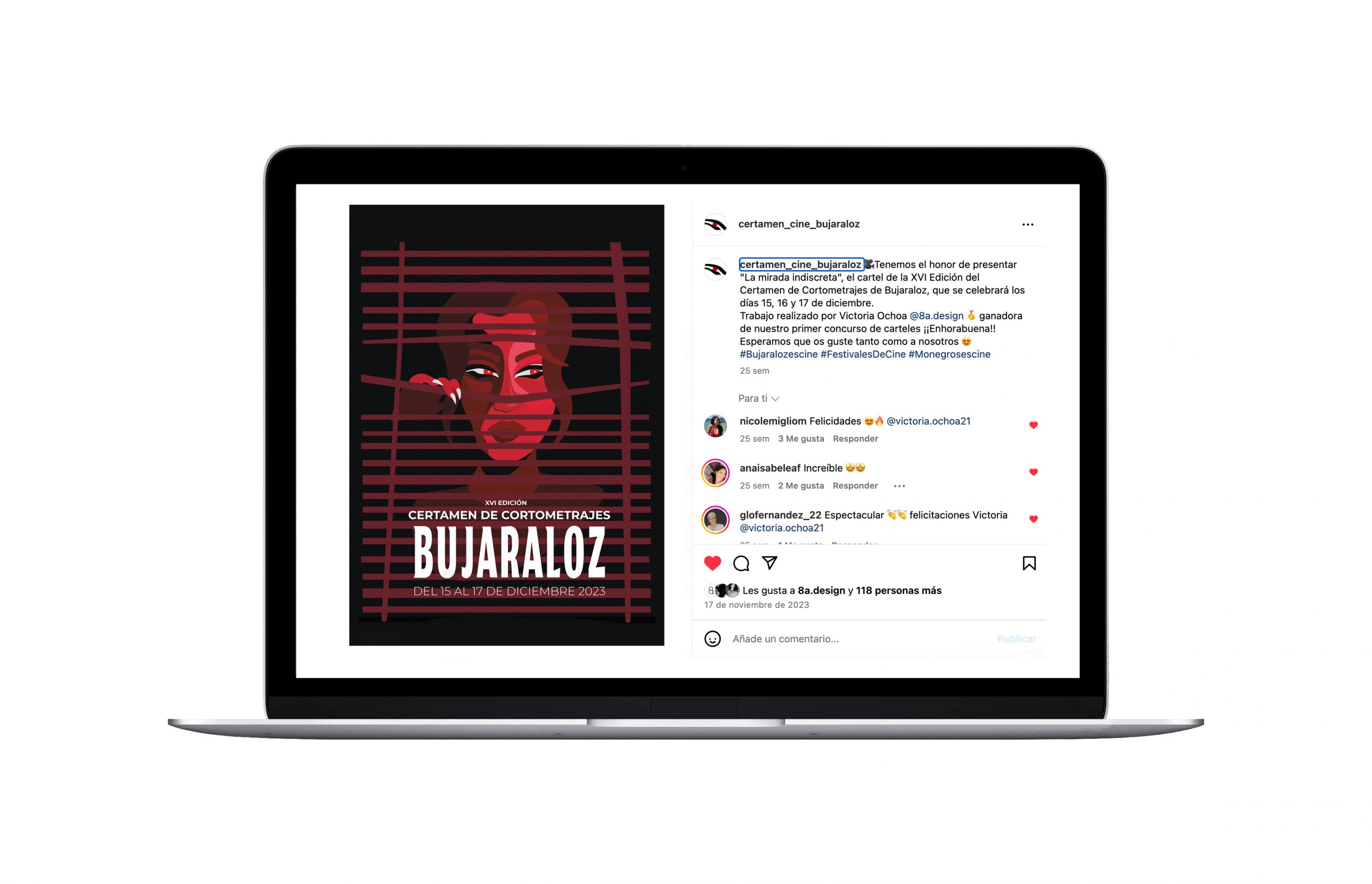 La ilustración titulada “La mirada indiscreta” se alzó con el primer lugar en el Concurso para la selección del Cartel del certamen y se utilizó como imagen principal para promocionar la edición 2023 del Certamen de Cine de Bujaraloz.