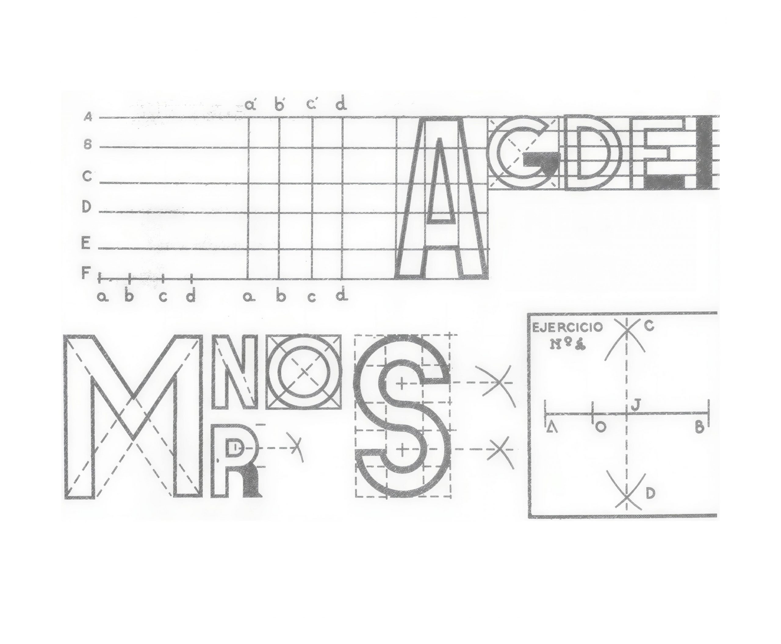Partiendo de este sistema tipográfico geométrico se realizaron modificaciones sobre la tipografia Aventa, con cortes diagonales de 45º (tal y como en el sistema legado) dando una sensación de modernidad y haciendo referencia a una estructura constructiva.