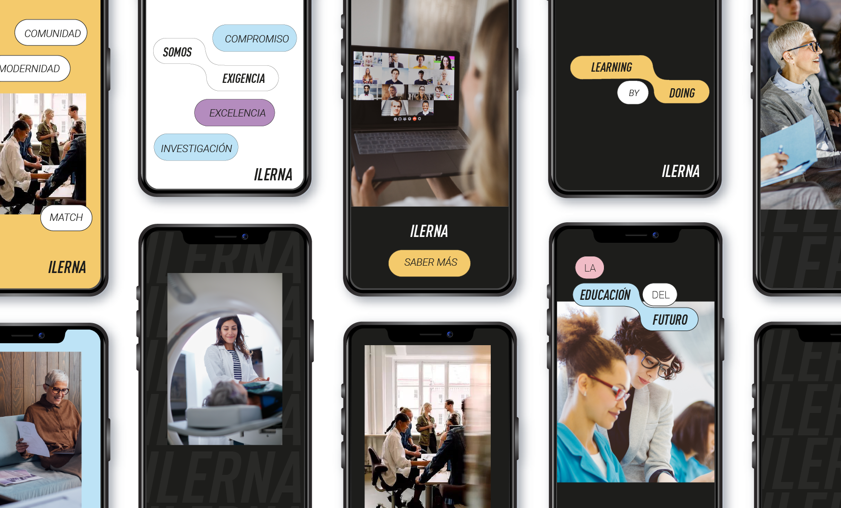 Ilerna ya no se sentía representada por su marca, además necesitaban reposicionarse como líderes del sector, destacando la pedagogía de vanguardia y la “educación del futuro” en formato online, especialmente destacando sus formaciones en FP. Poner en valor su manera de enseñar “learning by doing”.